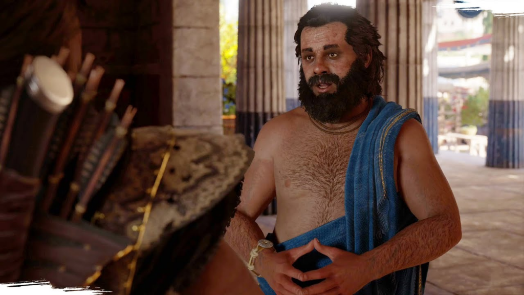 Em Assassin’s Creed Odyssey, ambientado na Grécia Antiga do século V a.C., Sócrates aparece como um personagem secundário carismático e provocador. O protagonista (Kassandra ou Alexios) pode interagir com ele em Atenas, onde o filósofo propõe dilemas morais e questiona as escolhas do herói, fiel ao seu estilo histórico de fazer perguntas incômodas. Suas aparições no jogo são leves e bem-humoradas, capturando o espírito inquieto e irônico do pensador ateniense.