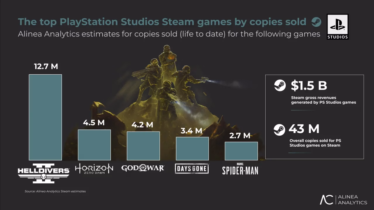 A PlayStation já faturou cerca de US$ 1,2 bilhão com a venda de seus jogos no Steam. Segundo estimativas da Alinea, a receita bruta total dos títulos na plataforma da Valve ultrapassa US$ 1,5 bilhão, com a diferença ficando para a comissão da loja.