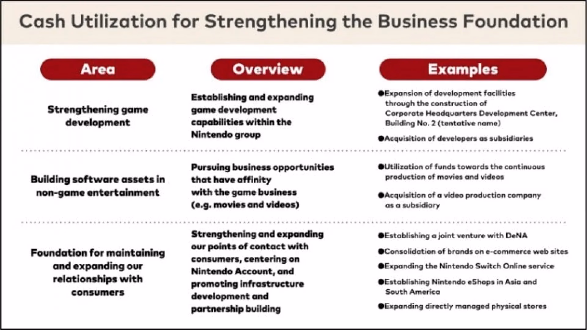 Para isso, a Nintendo também vai construir um novo centro de desenvolvimento em sua sede. A decisão marca uma mudança na estratégia da empresa, que tradicionalmente preferia o crescimento orgânico de suas equipes internas.