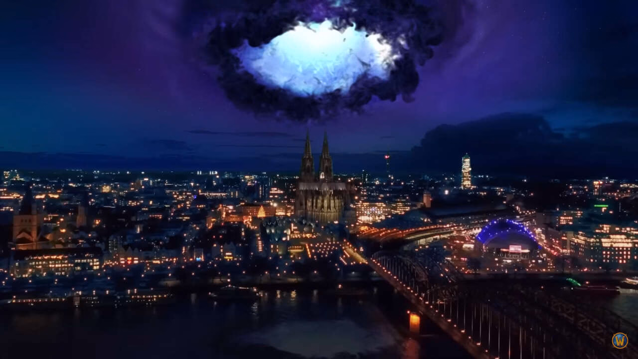 O trailer mostra a escuridão avançando sobre Azeroth, com um foco especial na personagem Xal’atath. A grande surpresa, no entanto, acontece no final: o vídeo corta para imagens do mundo real, exibindo a Tempestade do Caos sobre a icônica Catedral de Colônia, na Alemanha — cidade onde ocorre a Gamescom.