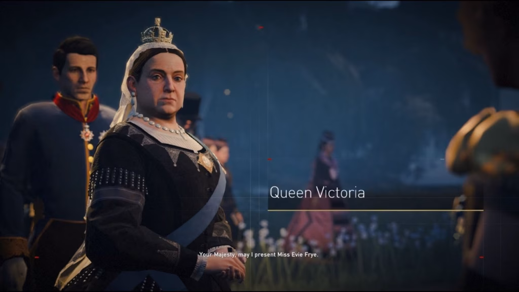 In Assassin’s Creed Syndicate, set in Victorian London in 1868, Queen Victoria is a background figure in the narrative. The protagonists Jacob and Evie Frye fight the Templars who seek to control the city and, by extension, the British Empire. The monarchy and the political power of the crown are central themes of the game, and Victoria represents the ultimate symbol of power that both Assassins and Templars seek to influence.