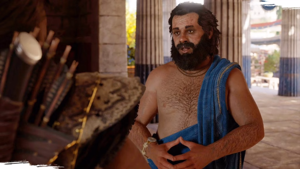 In Assassin’s Creed Odyssey, set in Ancient Greece during the 5th century BC, Socrates appears as a charismatic and provocative supporting character. The protagonist (Kassandra or Alexios) can interact with him in Athens, where the philosopher poses moral dilemmas and questions the hero’s choices, staying true to his historical style of asking uncomfortable questions. His appearances in the game are lighthearted and humorous, capturing the restless and ironic spirit of the Athenian thinker.