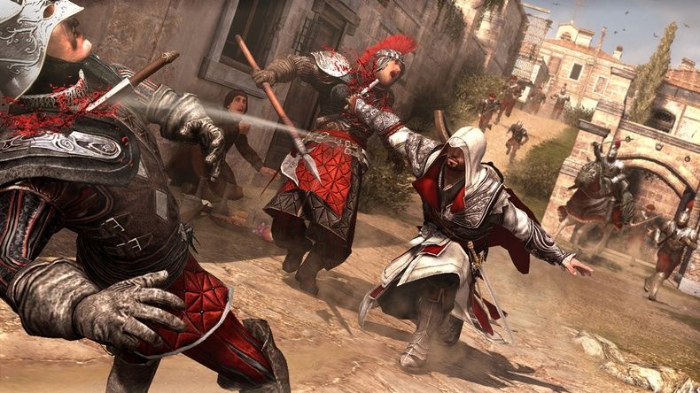 Após os eventos, e o sucesso, do jogo anterior, a Ubisoft resolveu nos contar mais sobre a história de Ezio Auditore. Desta vez, Ezio se estabelece em Roma com o objetivo de destruir o poder dos Bórgia, família que controla a cidade e o Vaticano. Para isso, ele reconstrói a Irmandade dos Assassinos, recrutando e treinando novos membros para lutar ao seu lado. Brotherhood introduziu o sistema de recrutamento de assassinos e a experiência multijogador na franquia.